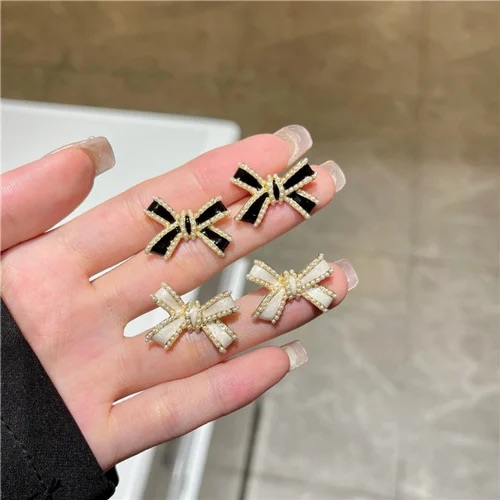 Add a touch of chic elegance to your style with these White Bow Earrings. Featuring a sleek and stylish bow design in a classic white finish, these earrings are perfect for making a bold yet sophisticated statement.
